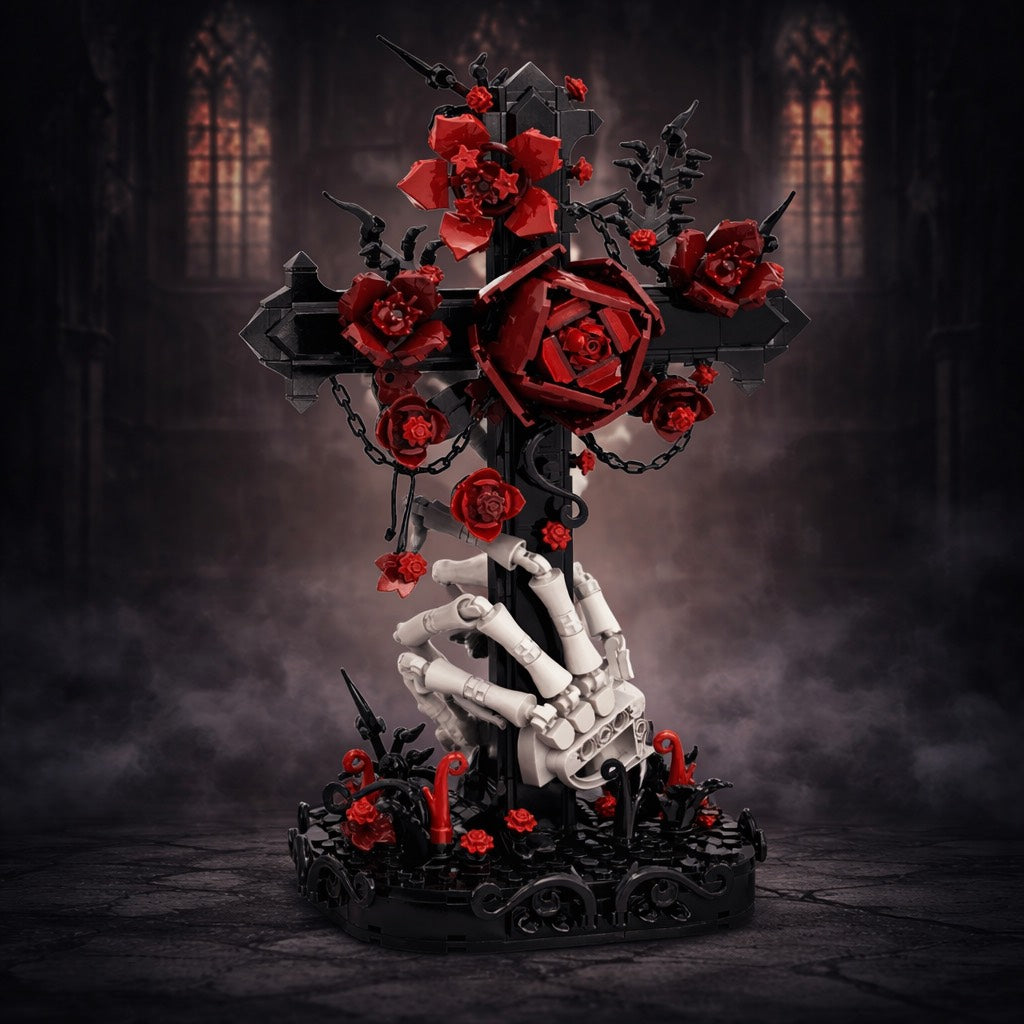 A sculpted skull-and-rose design built through layered construction. Clean lines, dark contrast, and a refined gothic finish.